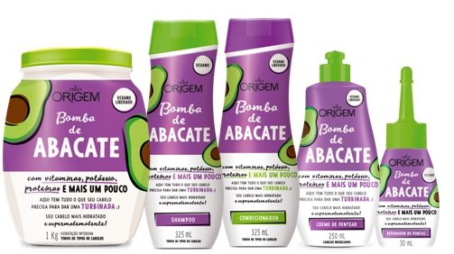 Pensando nos benefícios da fruta, a Nazca Cosméticos desenvolveu uma linha com o ingrediente como o principal ativo. Composta por shampoo, condicionador, creme de pentear, reparador de pontas e creme hidratante, a linha vegana “Origem Bomba de Abacate” hidrata, estimula o crescimento e combate a perda de cabelos. As vitaminas da fruta são absorvidas pelo córtex capilar, fundamental para ajudar no crescimento saudável dos fios, além de ter ação emoliente que deixa as madeixas extremamente macias.