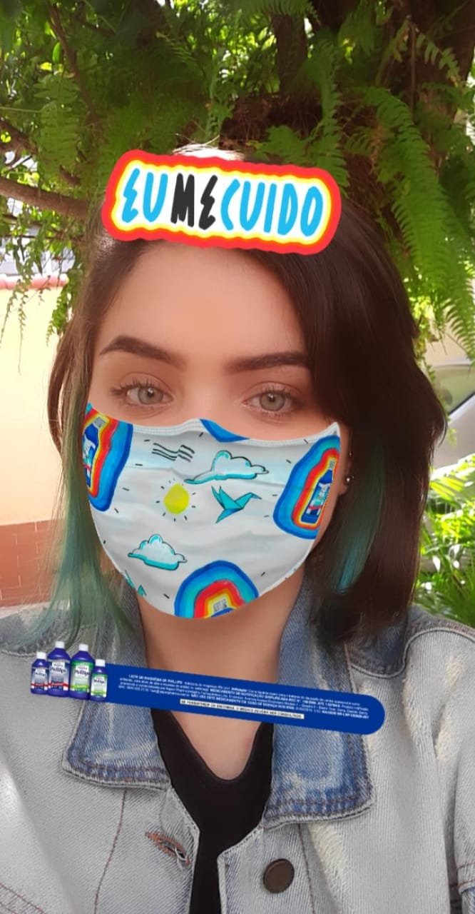 O filtro usado para o recurso de stories no Instagram contém design artístico com identidade visual de Felipe Guga, com máscara de proteção estampada e as frases #EuMeCuido e #SeCuideTB. “No caso de Leite de Magnésia Phillips, o cuidado com a saúde e bem estar está dentro do nosso guarda-chuva de comunicação, então faz todo sentido incentivar o uso da máscara e de se cuidar e cuidar dos outros, como as nossas avós cuidavam da gente com leite de magnésia de Phillips. E poder associar a colaboração que fizemos com o ilustrador Felipe Guga na estampa da máscara, foi a cereja do bolo.”, destaca Mariana Corrêa.