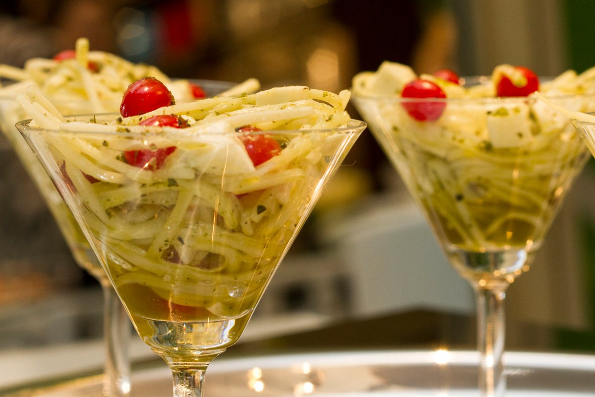 Menu Itália: Salada de Risoni (provolone, tomate seco, azeitona preta, peito de peru e molho pesto) – Berinjela à parmegiana por (R$45) para duas pessoas. (R$65) para quatro. Ravióli caprese ao molho pomodoro com manjericão, Fagottini de cogumelos ao molho mascarpone, Papardelle a Carbonara. (R$70) porção para duas pessoas e (R$120) para quatro.