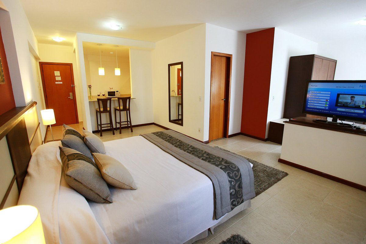 O atendimento na recepção do hotel é virtual, incluindo check in e check out, áreas comuns fechadas, acesso do hóspede apenas aos apartamentos e café da manhã e serviços de room service entregues na porta do quarto.