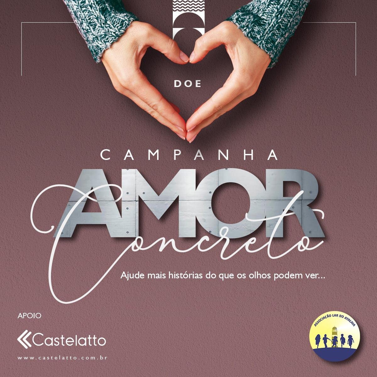 Castelatto, empresa líder no segmento de pisos e revestimentos de concreto arquitetônico, cria a campanha Amor Concreto, com a finalidade de expandir as mobilizações para minimizar os impactos gerados pela pandemia do novo coronavírus, a Covid-19, nos setores afetados indiretamente, como as instituições de caridade, que ajudam pessoas em situação de vulnerabilidade social.Essa iniciativa tem como objetivo arrecadar verbas para o provimento de cestas básicas e itens de primeira necessidade, a serem distribuídos durante o período de isolamento para crianças e suas famílias assistidas pelo do Lar do Atalaia, em Atibaia, interior de São Paulo.