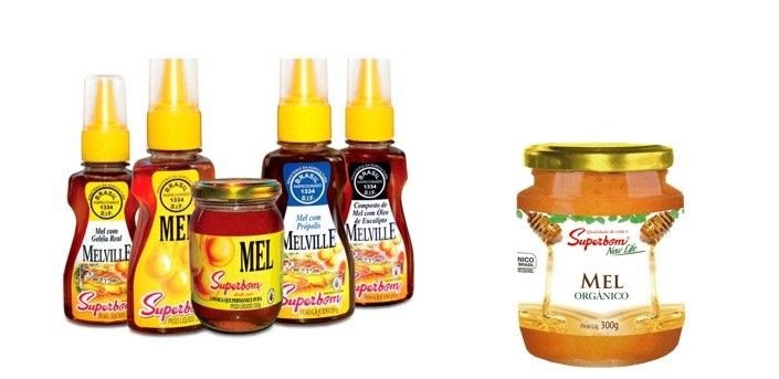 Linha de méis da Superbom, disponíveis no tipo orgânico (300g), tradicional (200gr e 330g) e composto em tubetes (200g) de eucalipto, geleia real e própolis. Ricos em nutrientes que trazem benefícios para a saúde, todos ajudam a evitar a queda de imunidade.