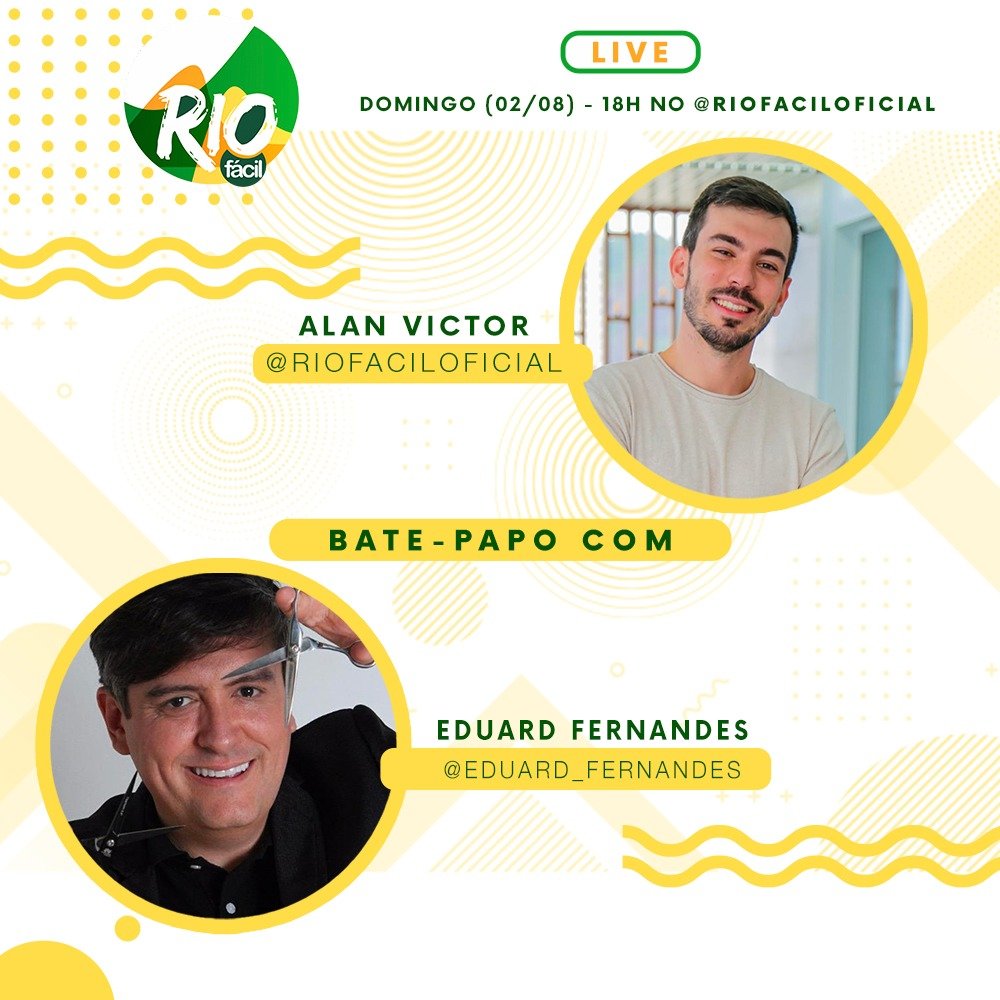 No domingo, 02 de agosto, às 18h, o Digital Influencer, Alan Victor conversa com o Hair stylist, Eduard Fernandes, da Maison Meyer. Durante a live, o maquiador das celebridades falará sobre beleza, moda e makeup. A live será realizada no Instagram @riofaciloficial.