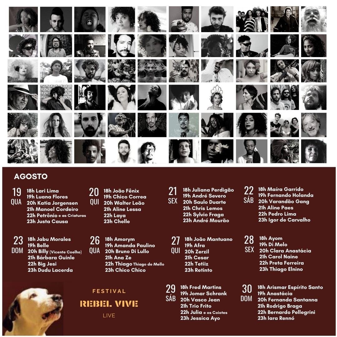 Após duas edições de lives que reuniram dezenas de artistas renomados e da cena alternativa nacional, a Audio Rebel, palco tradicional no Rio de Janeiro, promove a terceira edição de seu festival online Rebel Vive. O line-up traz uma nova gama de apresentações de variados sons, gêneros e sotaques, em uma verdadeira representação da riqueza musical que passa pela programação presencial da Rebel. O objetivo do evento, que se estende entre os dias 19 e 30 de agosto, é levantar fundos para manter a casa de shows mesmo durante o período da pandemia de Covid-19, já que o espaço respeita as normas de isolamento social recomendadas pelos principais órgãos de saúde. A programação começará sempre às 18h e será transmitida pelo Instagram da Audio Rebel (@audiorebel).