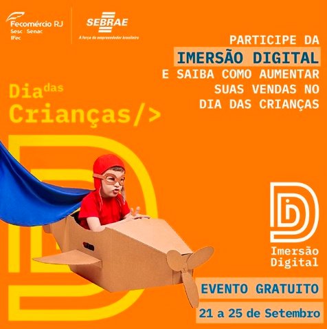 O Dia das Crianças, comemorado em 12 de outubro, está chegando. Para preparar o setor de comércio varejista para mais uma data importante e fortalecer a economia do estado, a partir desta segunda-feira (21), o Sebrae Rio e o Sistema Fecomércio RJ elaboraram soluções criativas e promocionais para incentivar o consumo, atrair novos clientes, produzir campanhas apropriadas para as redes sociais, estruturar um planejamento dos pequenos negócios e oportunizar um aumento de receita para o empresário fluminense.