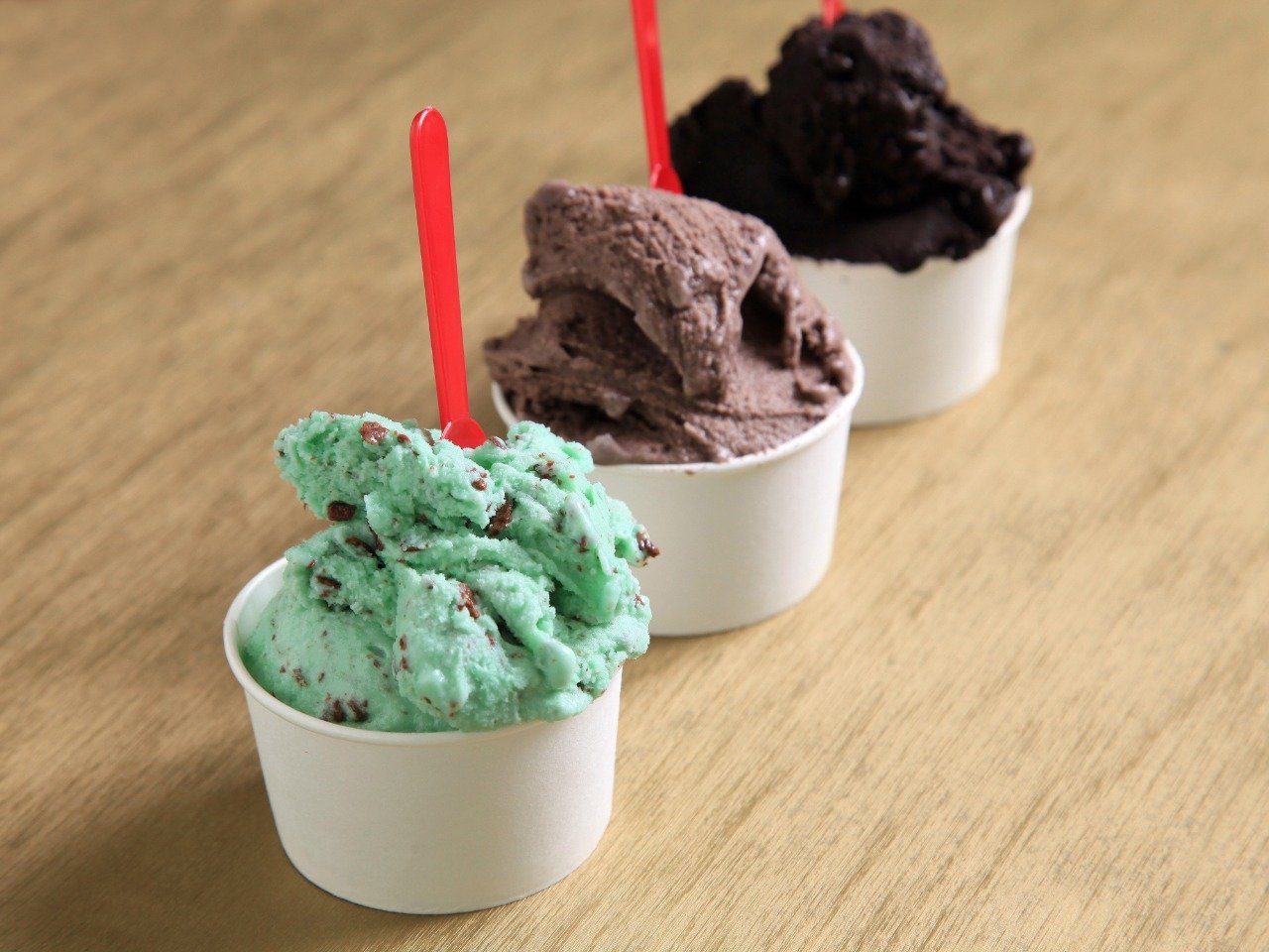 Entre os sabores de frutas, é possível se deliciar com os sorbets (sorvete feito sem leite e com baixo teor de gordura) de limonada rosa, abacaxi com menta, manga com maracujá, pitaya e muito mais. Com leite, podemos destacar o de banana, paçoca, pistache com laranja, lavanda com mel e pêssego grelhado. Limão santo, Hibisco com frutas vermelhas e chá-verde com azedinha são os destaques sem leite e ainda há os cremes veganos feitos com leite vegetal como cacau com leite de coco e leite de castanha com nibs de cacau.