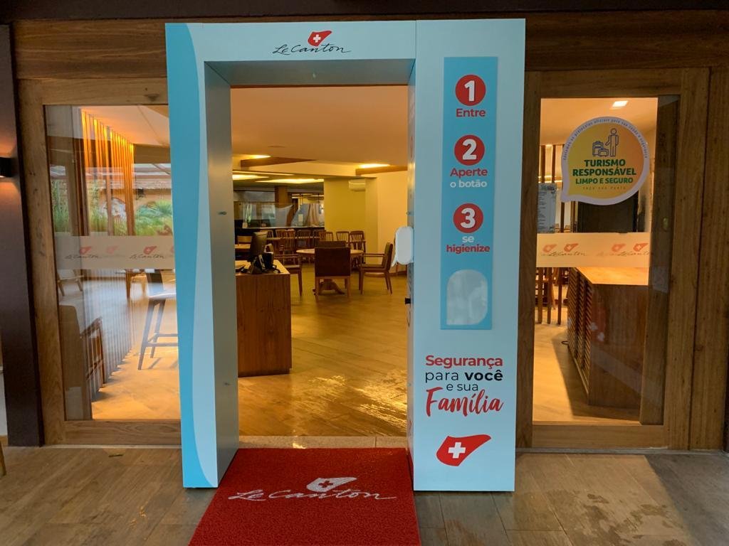 Além das regras já adotadas por toda a hotelaria brasileira, distribuindo álcool gel e sugerindo o distanciamento social entre os hóspedes, o Le Canton colocou em uso algumas novas tecnologias.