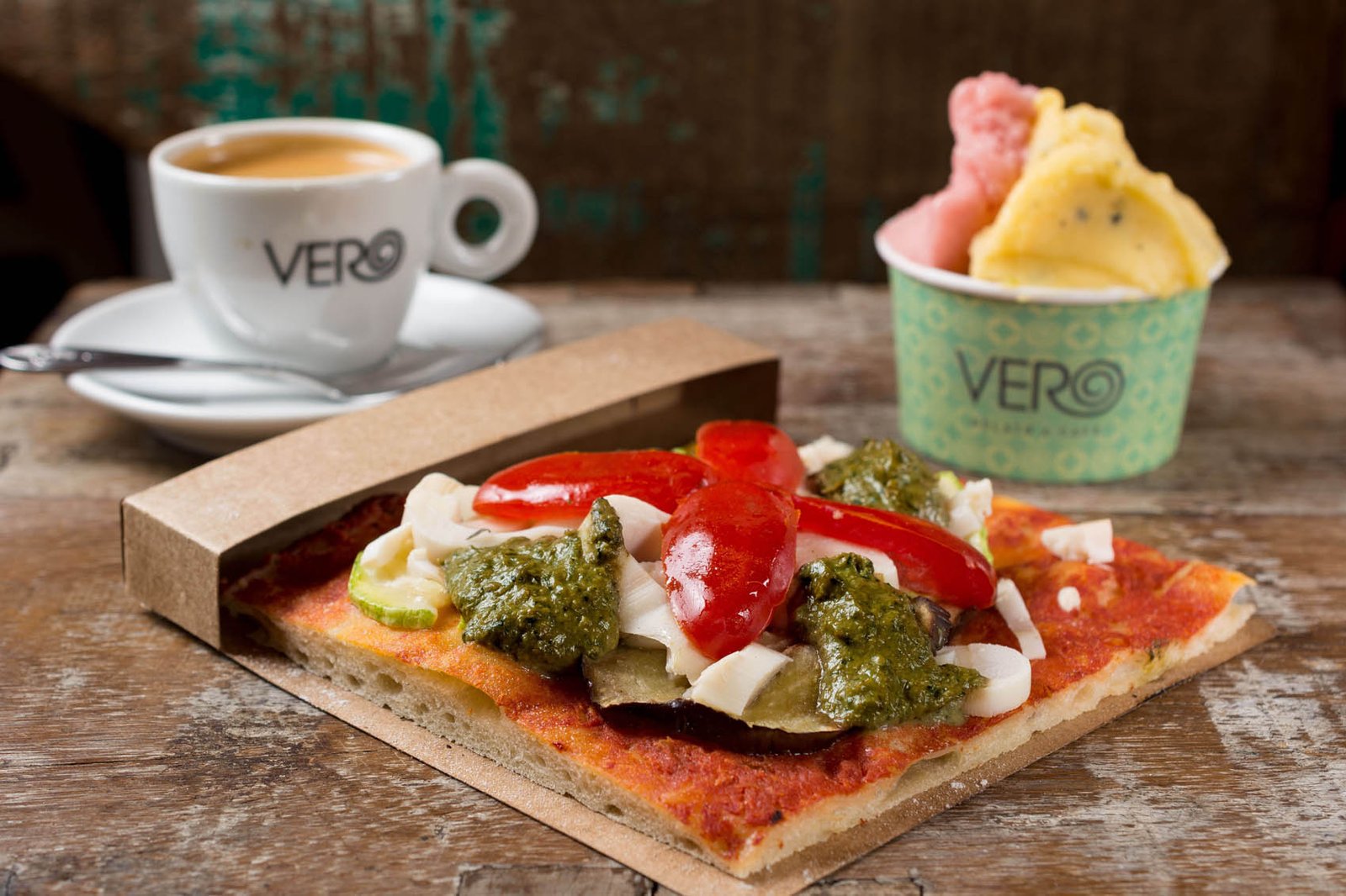 Conhecida por seus gelatos, Vero aposta pizzas com sabores variados para o pós praia e sorbets de frutas exóticas