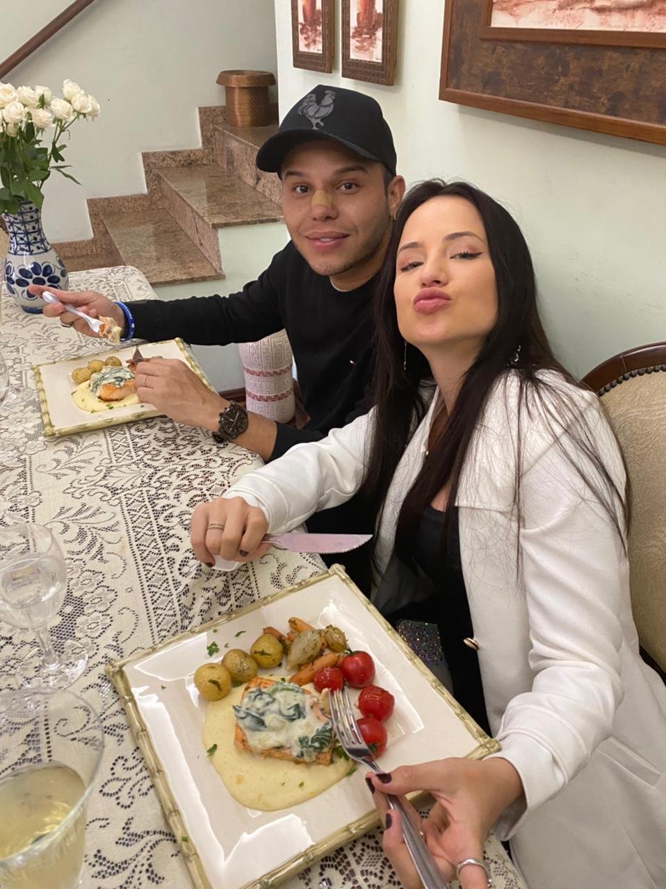 Seguindo as comemorações, eles fecharam a noite em um motel de luxo, em São Paulo, com decoração feita com pétalas, balões e surpresas, com trilha sonora de uma canção composta e gravada por ela, especialmente, para a data.