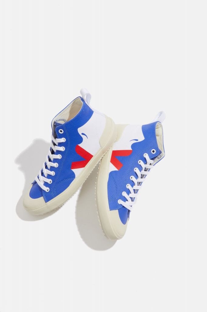 Assim como os demais modelos da Vert, o Nova High é produzido com algodão orgânico e agroecológico e conta com borracha nativa da Amazônia nas suas solas. Seu design une os tons de azul klein, branco e vermelho, criando uma silhueta que transforma a marca registrada de Vert em lábios únicos, vistos de perfil.