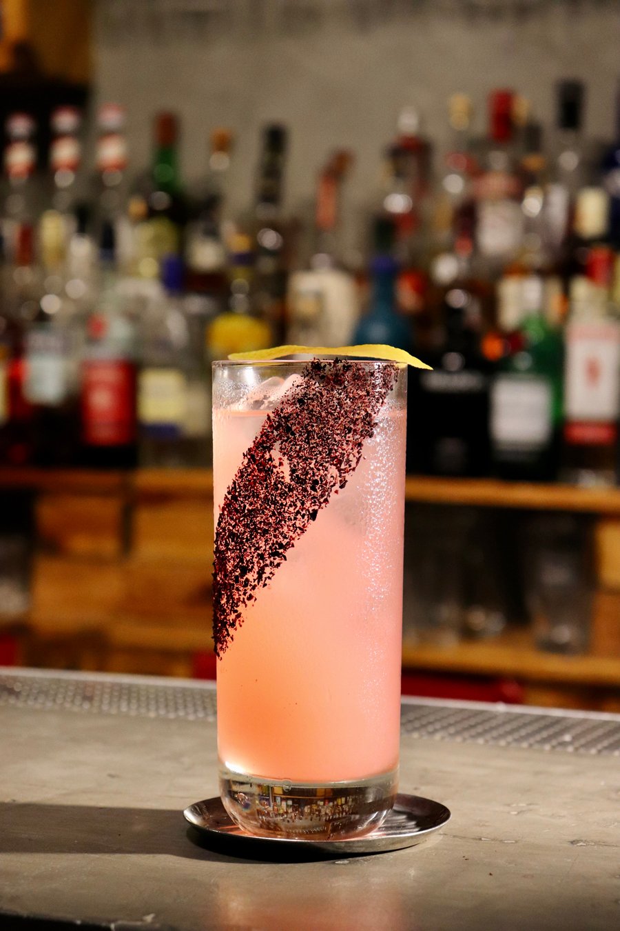 O drink de Michell, batizado de “Be Better Every Day”, tem aroma cítrico com leve floral e gosto ácido com doce, feito com Ketel One Botanical Grapefruit & Rose, cordial sustentável de cascas e talos com hibisco e tônica (R$28).