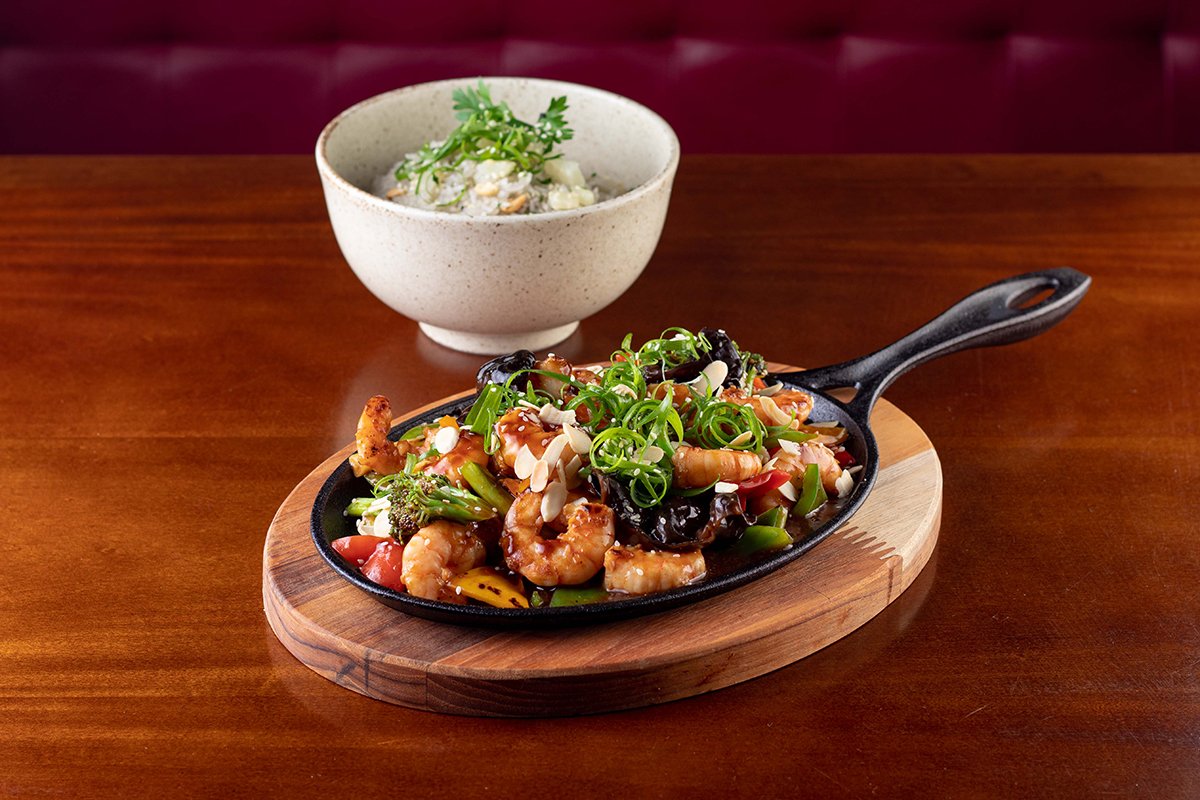 com arroz na wok com abacaxi (R$189); e Filé mignon ao wok, molho cantonês com mix de cogumelos e pak choi com macarrão ao curry (R$175).