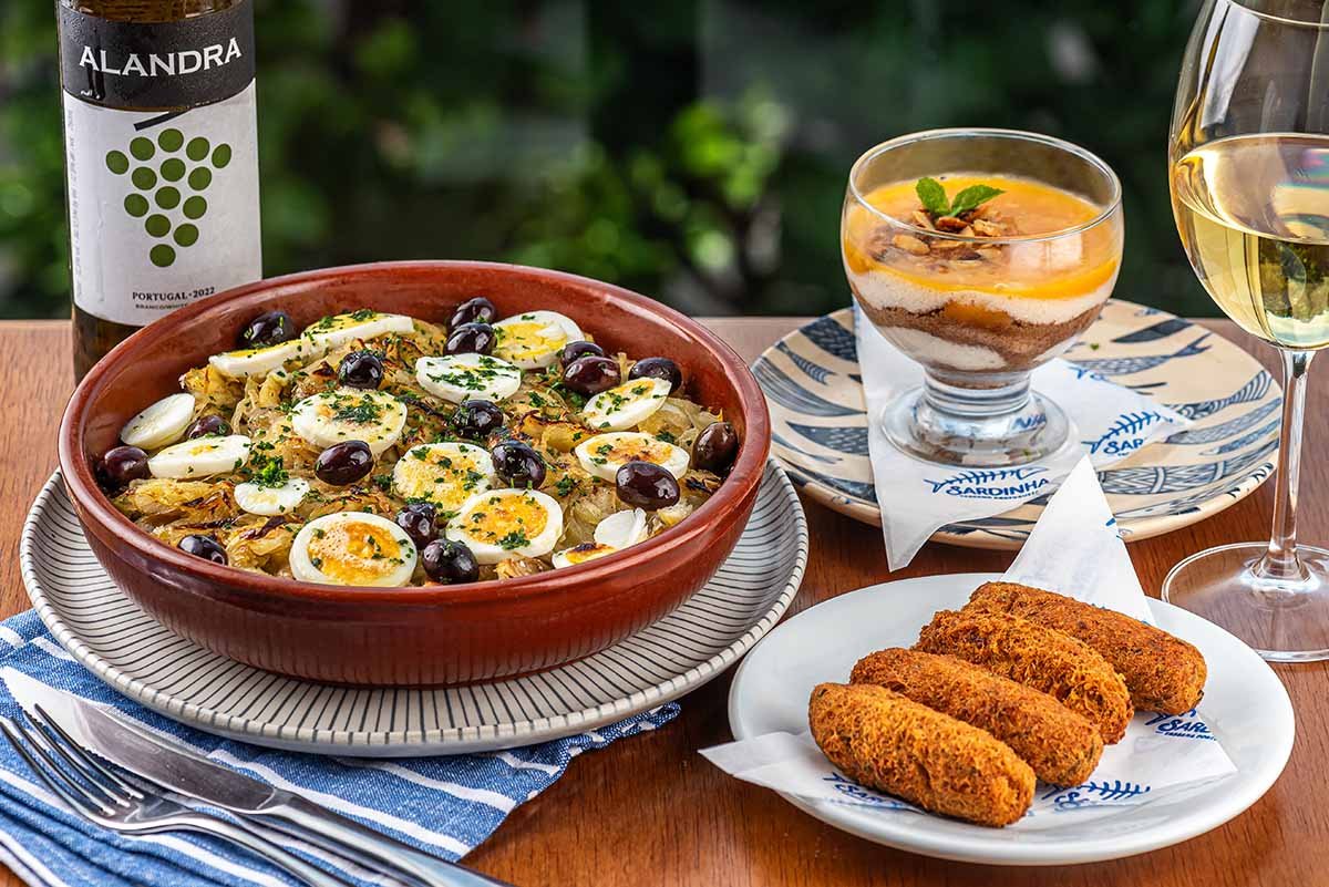 O menu especial contempla entrada, prato principal, sobremesa, além do opcional de bebidas. A começar pela entrada com a porção de Bolinho de Bacalhau, um clássico que não pode faltar em uma casa portuguesa. Na sequência, como principal, o Bacalhau à Casa – Lombo de Gadus Morhua, purê de batata, cebola confitada e camarão VG ao azeite e alho ou o Bacalhau à Gomes de Sá – um tradicional prato lusitano com bacalhau em lascas e batatas em rodelas. E para finalizar a experiência Sardinha bem romântica, Mousse de Chocolate – com espuma de Vinho do Porto ou Doce da Casa – famosa sobremesa presente na ementa de quase todas as tascas e tabernas portuguesas. O valor do menu é R$ 124,50 por pessoa.