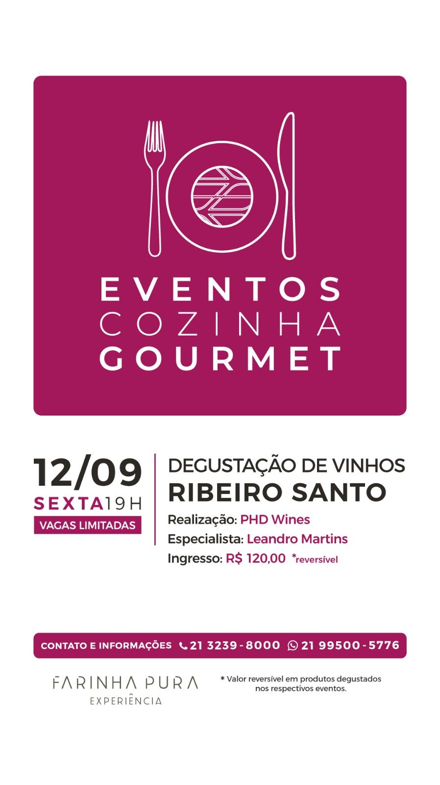 Na próxima sexta-feira, 12 de setembro, às 19h, o Empório Farinha Pura, em Botafogo, promove mais uma edição do projeto Eventos Cozinha Gourmet. A experiência será uma degustação exclusiva dos vinhos Ribeiro Santo, em parceria com a PHD Wines.