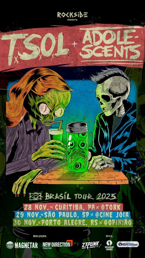 A iniciativa marca o início do Rockside, nova label de shows dedicado ao rock e suas vertentes mais pesadas. Para abrir a primeira edição, nada menos do que duas referências históricas: T.S.O.L. e Adolescents, nomes que atravessam gerações e continuam ativos com energia visceral.