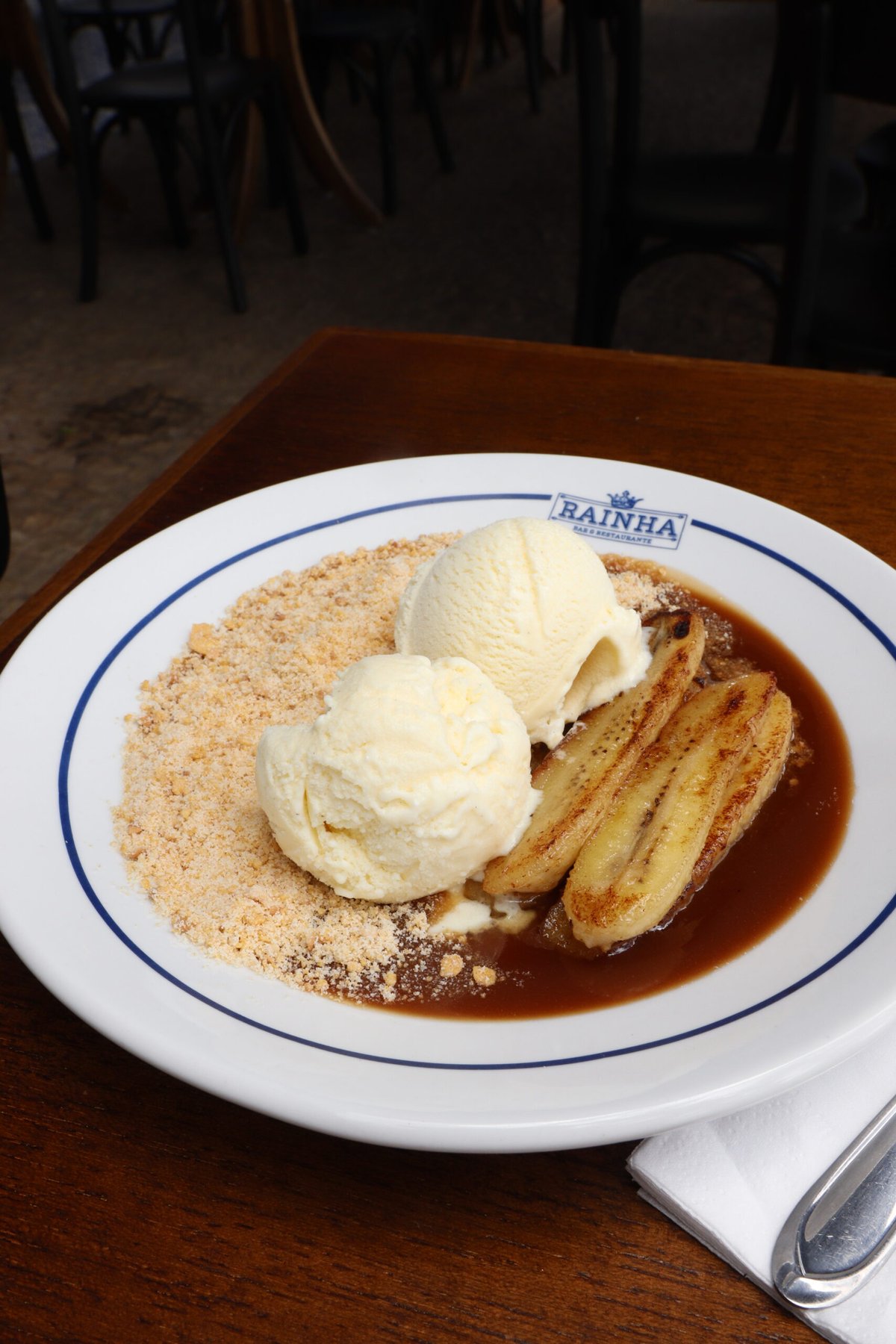 Destaque para a banana caramelizada (R$ 39,90), servida com caramelo, sorvete de creme e farofinha doce.