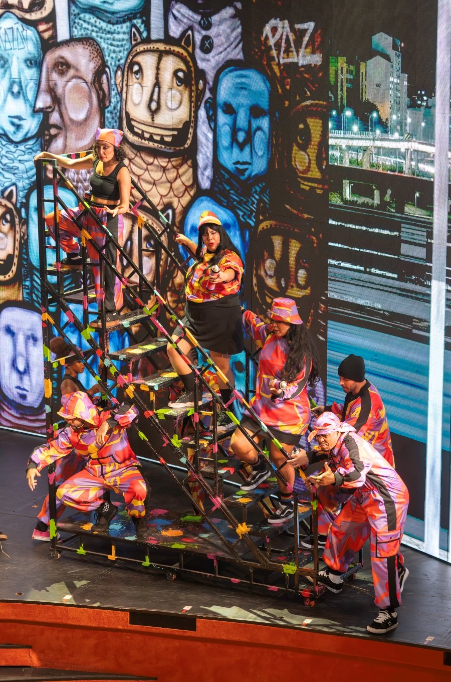 O palco de 400 m² conta com um painel de LED côncavo de 210 m² e tecnologia 4D, levando o público a uma viagem cinematográfica pelo Brasil — do Pelourinho à Amazônia. O espaço, com capacidade para 626 pessoas, combina light design interativo e imersão sensorial.