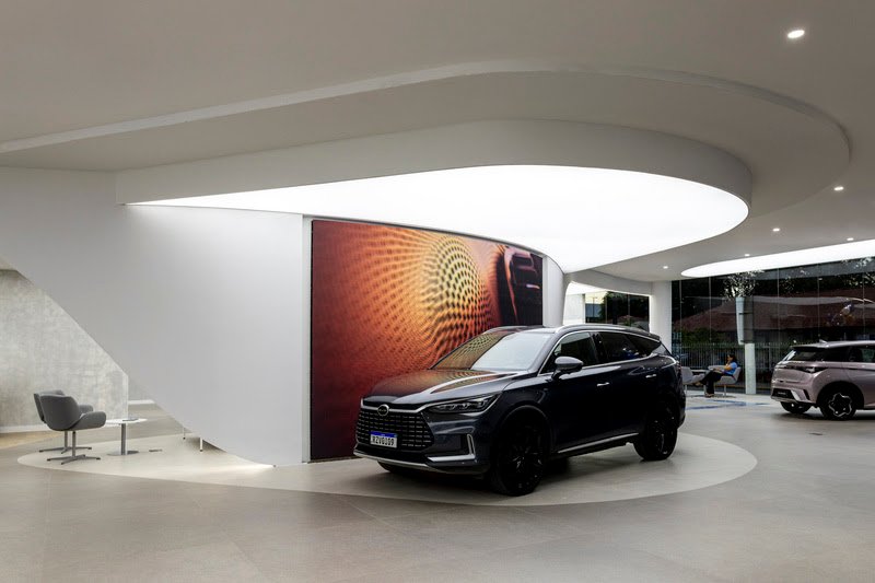 Com 180 lojas abertas até maio e previsão de 272 pontos de venda até dezembro, a BYD segue com ritmo acelerado de crescimento, inaugurando unidades em capitais, grandes centros e cidades do interior. Entre as lojas mais recentes estão Montes Claros (MG), Poços de Caldas (MG), Itumbiara (GO), Santiago (RS) e Brasília (DF) — todas com projetos de iluminação e telas tensionadas assinados pela DressALL.