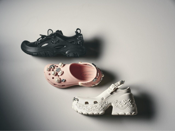 A criação reforça a assinatura de Simone Rocha, que mistura elementos arquitetônicos, femininos e lúdicos, sem abrir mão do conforto — marca registrada da Crocs. O resultado é uma silhueta que celebra o encontro entre o universo esportivo e o refinamento artesanal.