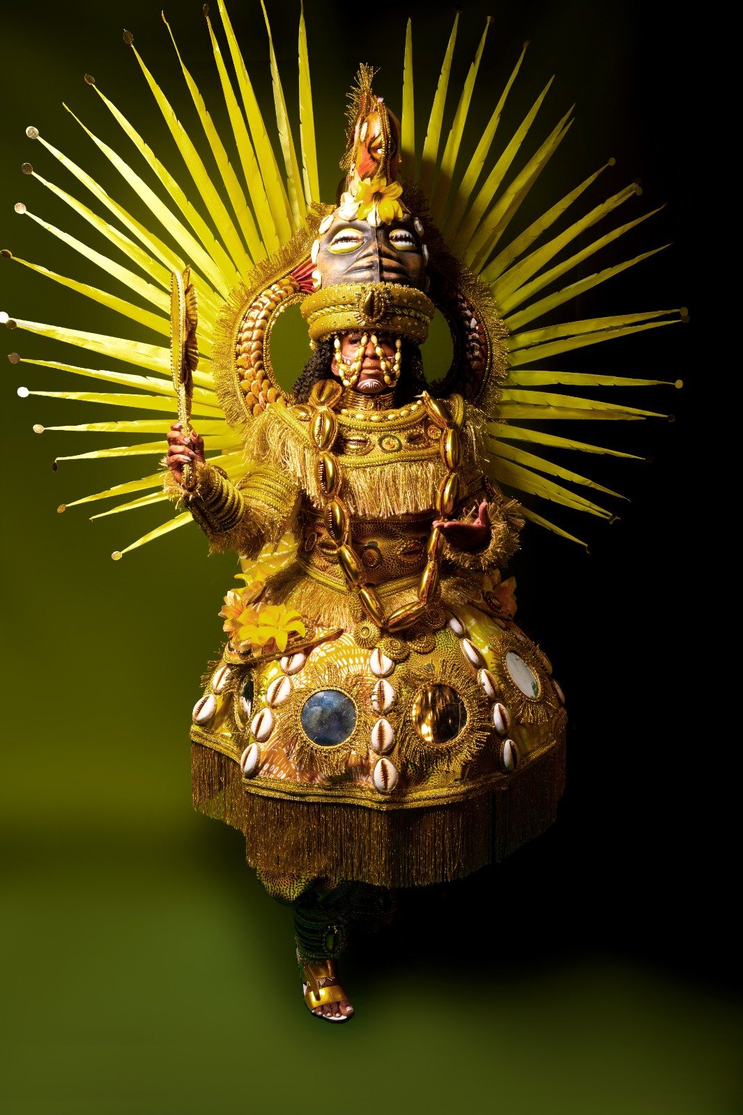 Império Serrano revela primeira fantasia do desfile 2026, inspirada em Oxum e na obra da escritora Conceição Evaristo. A ala de abertura traz tons dourados que simbolizam força feminina, ancestralidade e beleza, elementos centrais no enredo “Ponciá Evaristo Flor do Mulungu”.