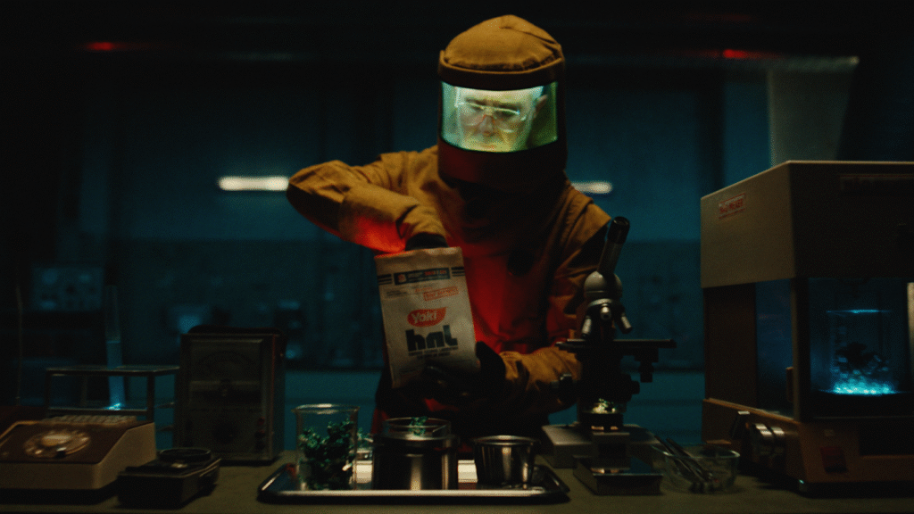 Assinada pela DAVID e produzida pela Barry Company, a campanha reproduz o ambiente do laboratório da trama. No filme, pesquisadores desenvolvem uma pipoca com cobertura marcante, reforçando o suspense e o tom sombrio do universo da produção da Netflix.
