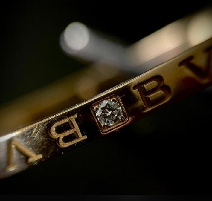Outro item de destaque é um bracelete Bvlgari de ouro rosé 18k, com dois diamantes brancos VVS totalizando 0,30 ct. A joia equilibra design moderno e luxo atemporal, com lance inicial de R$ 28 mil.
