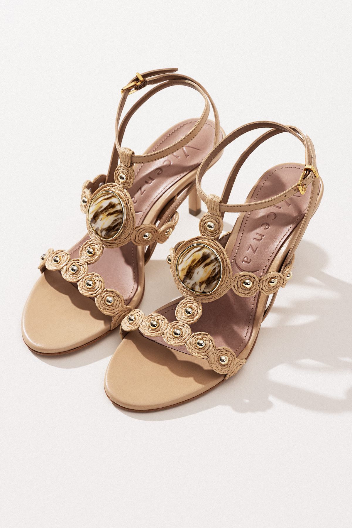 Na coleção, o design valoriza materiais naturais e sofisticados, como ráfia, couro e metalizados, aplicados a construções contemporâneas e femininas. O toque, a leveza e a expressividade guiam a criação.