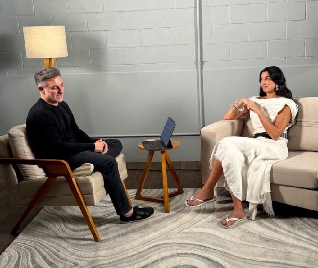 A cantora global Dua Lipa usou uma Havaianas Brasil logo branca em homenagem ao Rio de Janeiro em suas redes sociais. A marca consolida sua relevância cultural e no cenário da moda mundial.