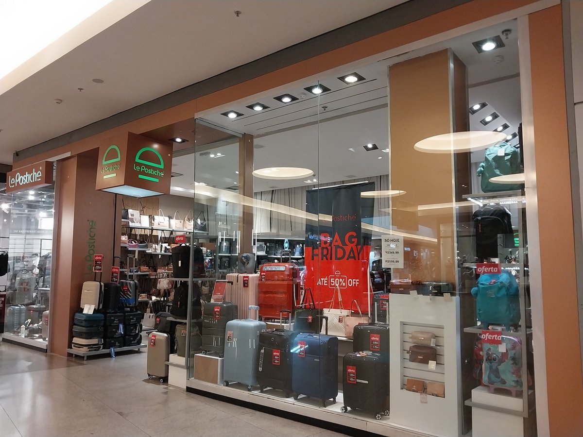 No Shopping Metropolitano Barra, a Le Postiche realiza a campanha Bag Friday, com descontos de até 50%. Uma mala preta grande cai de R$ 699,99 para R$ 579,99. Já a mala preta pequena reduz de R$ 599,99 para R$ 499,99, enquanto a bolsa executiva feminina passa de R$ 299,99 para R$ 179,99.