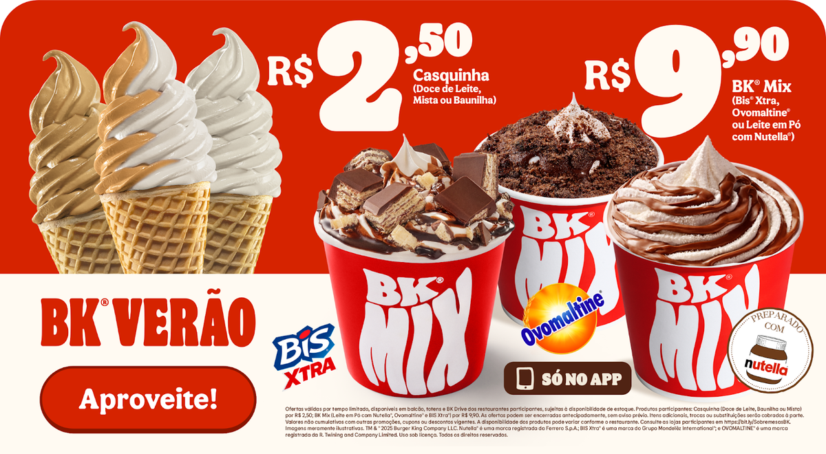 Burger King launches the BK Summer campaign in December with ice cream cones from R$2.50 and BK Mix from R$9.90 via the app.
