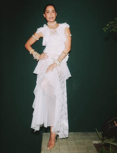 Camila Pitanga usa criação da collab Helô Rocha e Riachuelo em preview da nova pop-up store em Pinheiros, reforçando a moda brasileira feita à mão.