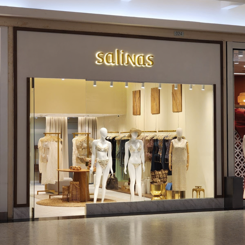 Salinas debuts at Shopping Park Lagos in Cabo Frio, featuring the Marseille collection and sophisticated looks for Summer 2025.