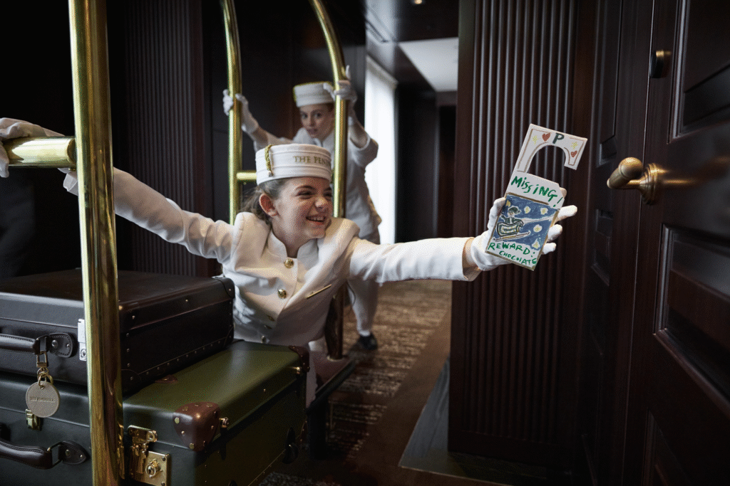 Para seguir as pistas do bom velhinho, a protagonista conta com a ajuda de um dos icônicos “Peninsula Pages”, personagens já reconhecidos como símbolo da marca. Juntos, eles embarcam em uma aventura lúdica pelos espaços do hotel.