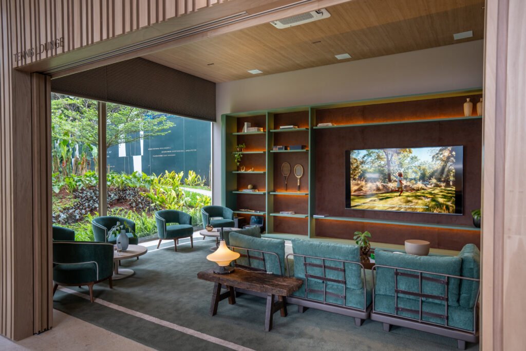 GranOscar Ibirapuera stand and decorated unit by Trisul preview spacious living with privacy and greenery, signed by Perkins&Will and Hanazaki.