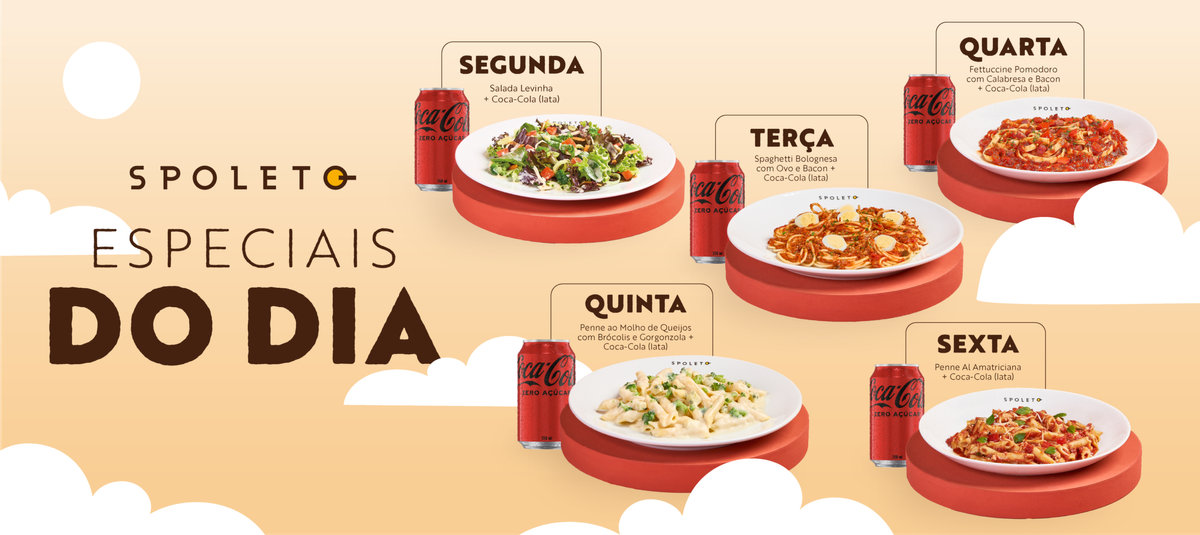 Spoleto estreia a campanha “Especiais do Dia” com combos de segunda a sexta, prato com Coca-Cola lata a partir de R$ 32,90.