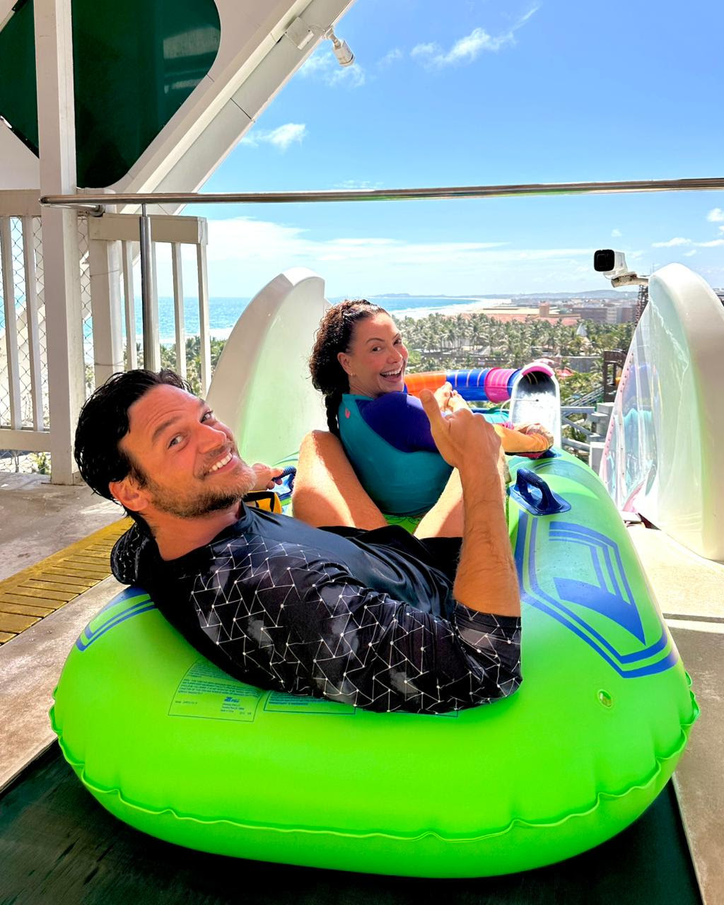 Os atores Fabíula Nascimento e Emílio Dantas fizeram uma viagem em família ao Beach Park, no Ceará. O objetivo foi celebrar os quatro anos dos gêmeos Raul e Roque, comemorados em janeiro.