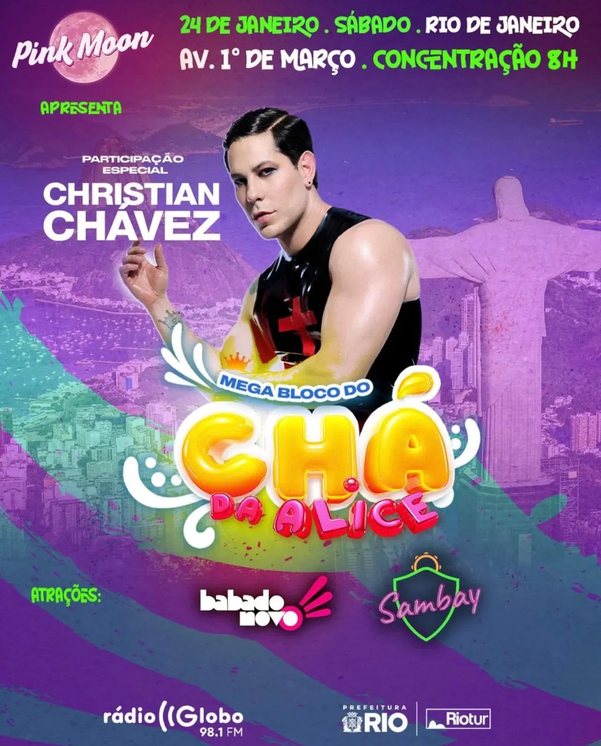 Christian Chávez confirms he will join Chá da Alice on February 24 and sing atop the trio in downtown Rio.