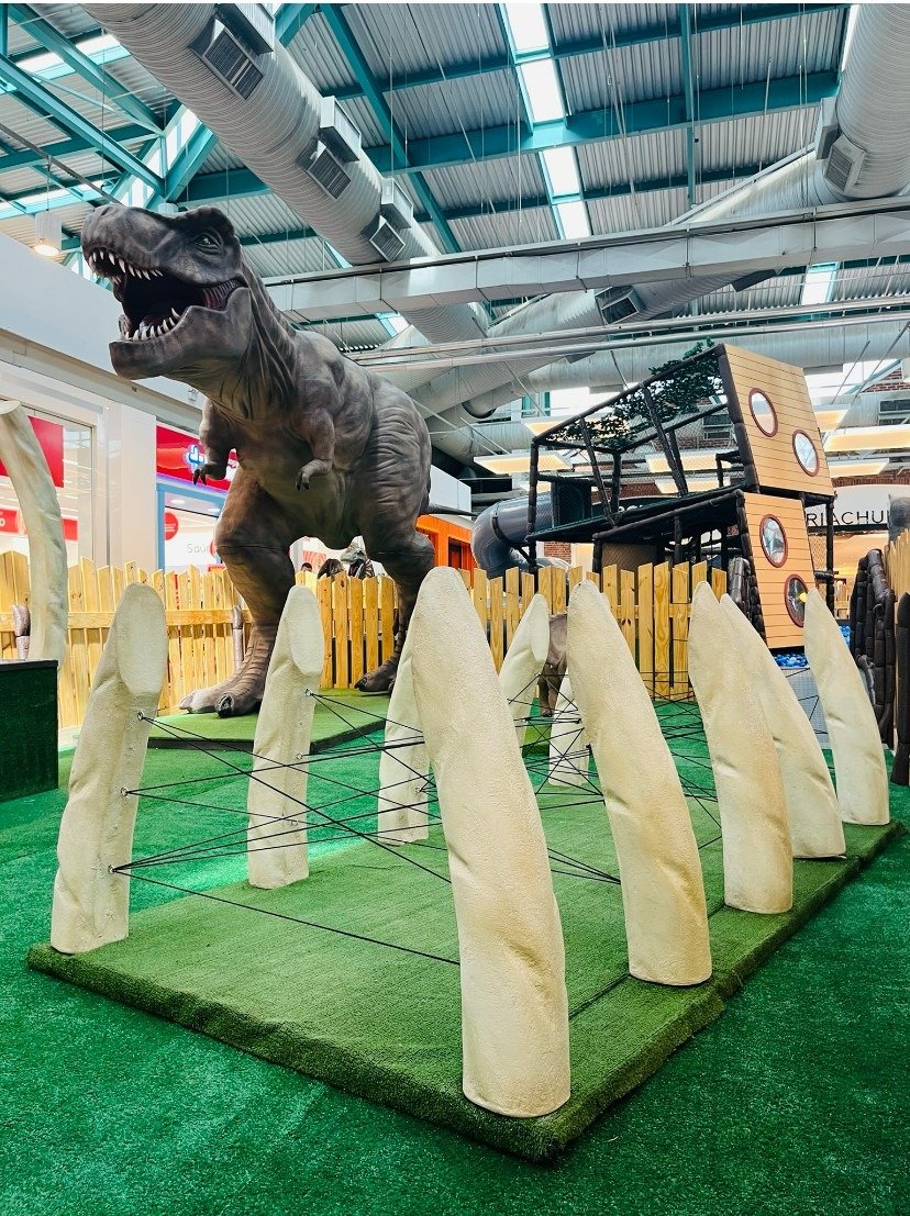 O ambiente reúne brinquedos e circuitos, como quebra-cabeça no piso e área de escavação. Também há dinos molas, escorregador e circuito de aventuras. Em seguida, o público encontra kid play, a Casa dos Dinos, e área para fotos temáticas.