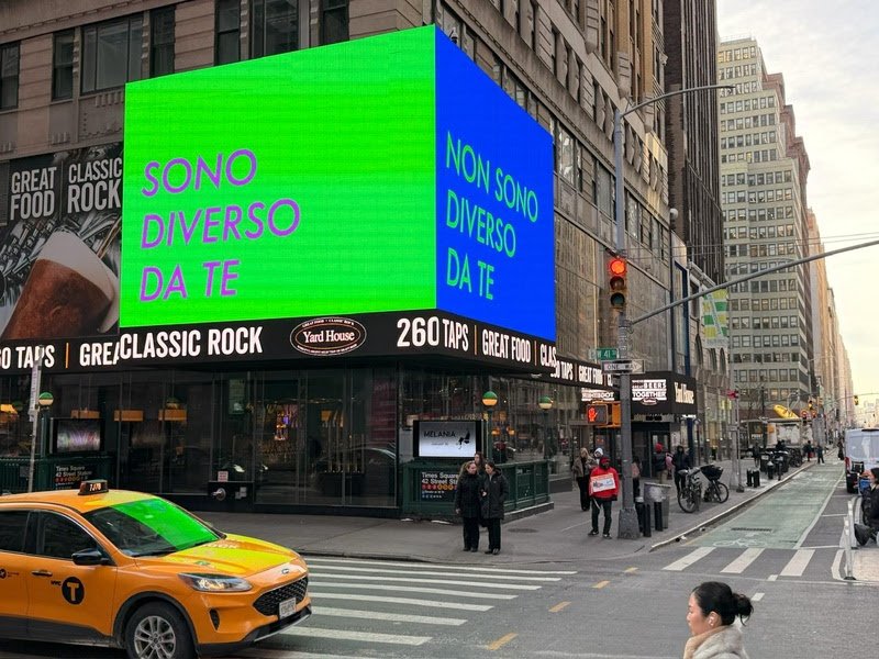 Artist Erika Malzoni’s installation displays “eu sou diferente de você — não sou diferente de você” in 12 languages in Times Square through Feb. 18.