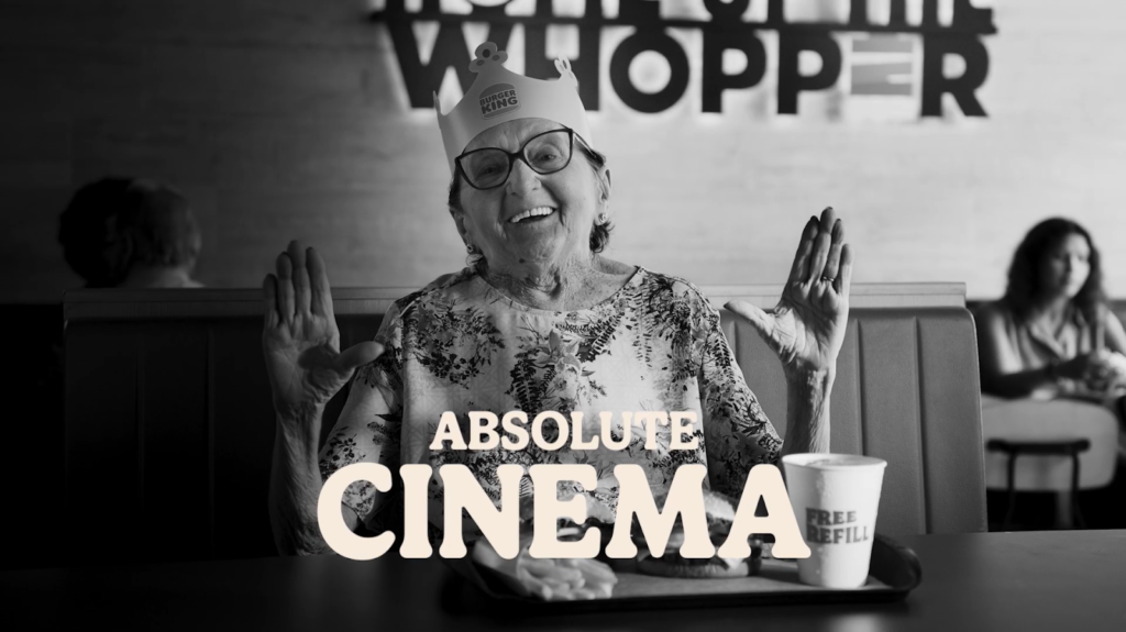 Ao final, Tânia usa a expressão “Absolute cinema!”, popular entre cinéfilos nas redes sociais. Dessa maneira, o BK reforça a ideia de uma refeição “cinematográfica” com porções generosas. A peça também destaca ingredientes frescos e preparo grelhado no fogo.