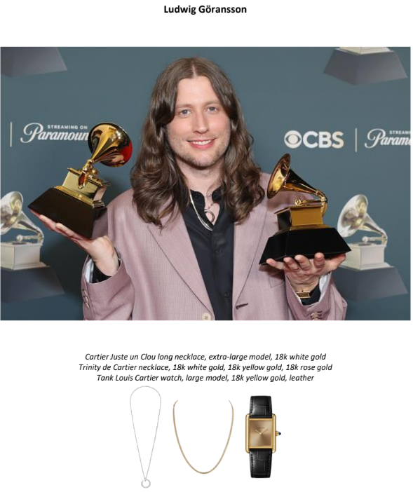 Cartier brilha com vencedores no tapete vermelho do Grammy 2026