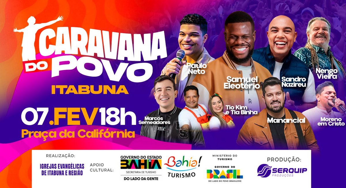 Itabuna (BA) será tomada por uma grande celebração de fé e música no neste sábado 7 de fevereiro, com a realização da Caravana do Povo – Itabuna.