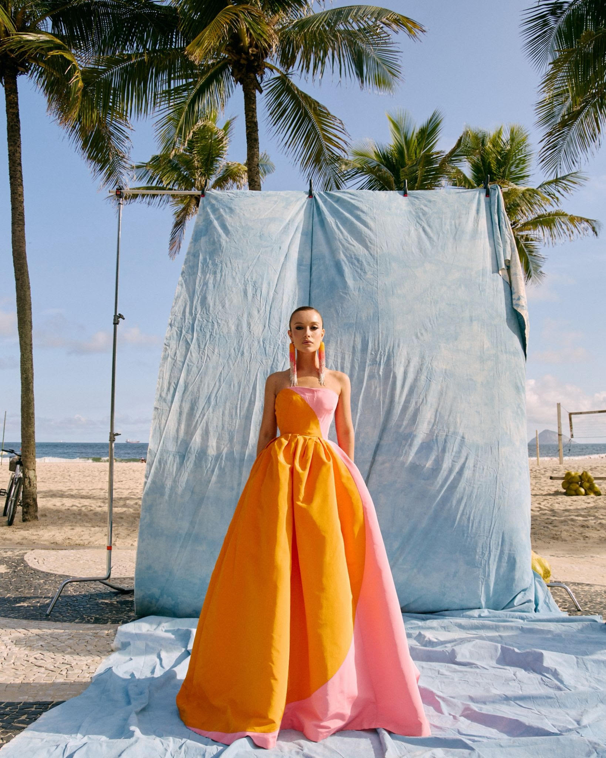 As cores evocaram o pôr do sol carioca e a energia da folia, segundo a proposta do visual. Além disso, a silhueta estruturada colocou cor e forma no centro da narrativa.
