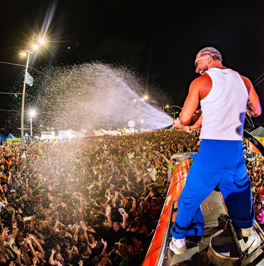 O momento mais marcante da festa aconteceu quando DENNIS subiu em um caminhão-pipa, surpreendendo os foliões e interagindo diretamente com a plateia. Além disso, a energia seguiu intensa ao longo de toda a apresentação.
