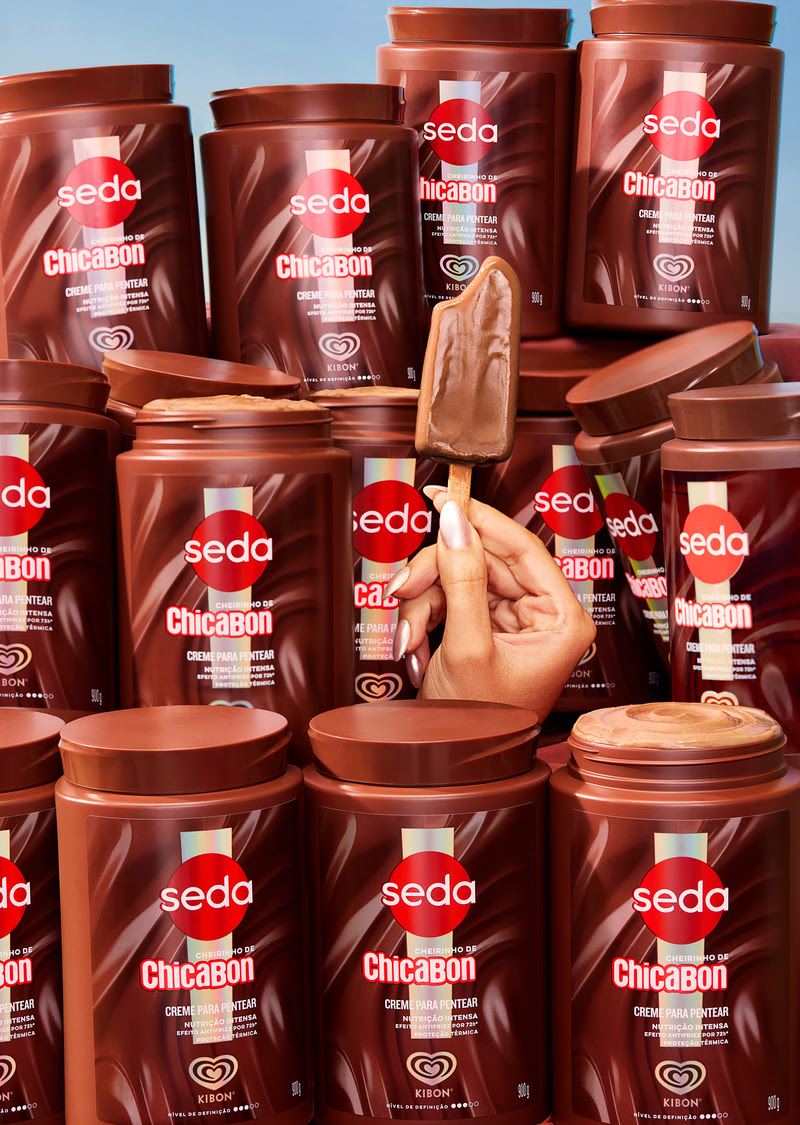 A marca de cuidados capilares Seda apresentou uma colaboração inédita com a Kibon, inspirada nos sorvetes clássicos Chicabon e Frutilly. A parceria aposta na tendência gourmand, que transforma fragrâncias de alimentos em experiências sensoriais, combinando hidratação e definição para os fios.
