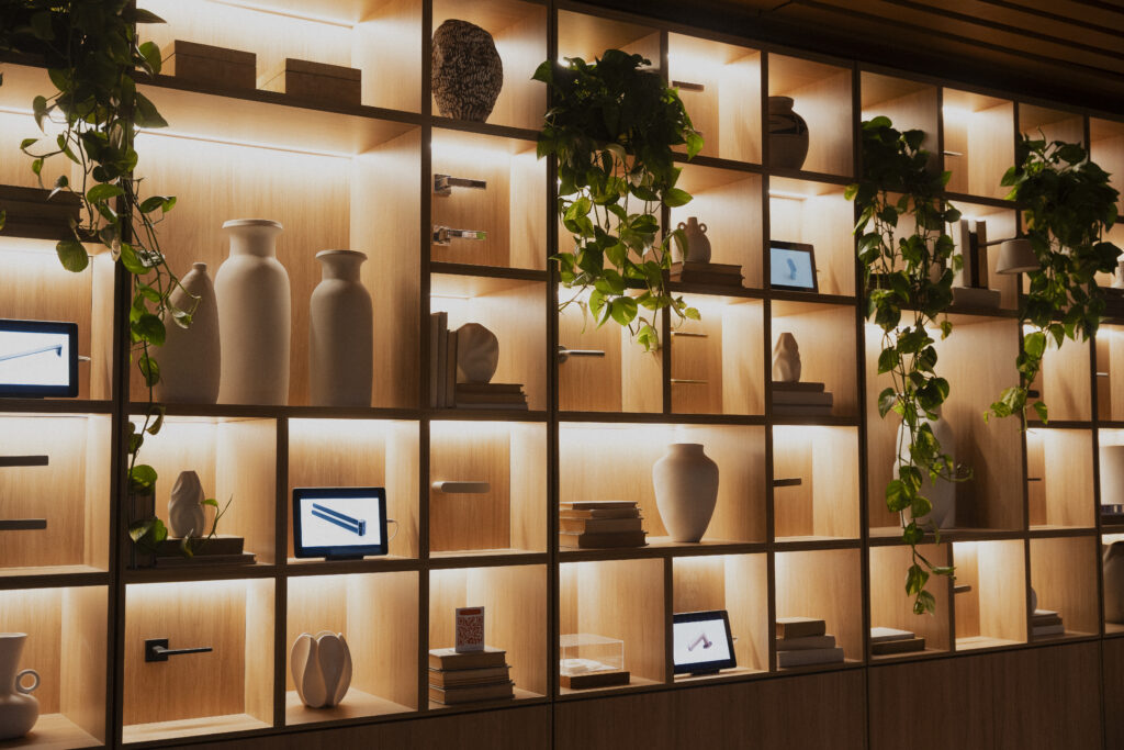 A concepção da Casa Nomma, assinada pelo arquiteto e curador Duda Porto, traduz o encontro entre produto e espaço. Em vez de observar peças em displays estáticos, o visitante vivencia o ambiente e percebe a integração entre arquitetura e ferragem.