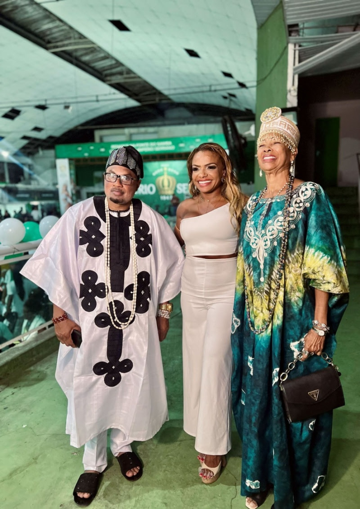 Quitéria Chagas prestigia festa de 79 anos do Império Serrano em Madureira, ao lado de Obá Hameed Adejoro da Nigéria, celebrando vice-campeonato na Série Ouro do Carnaval 2026.