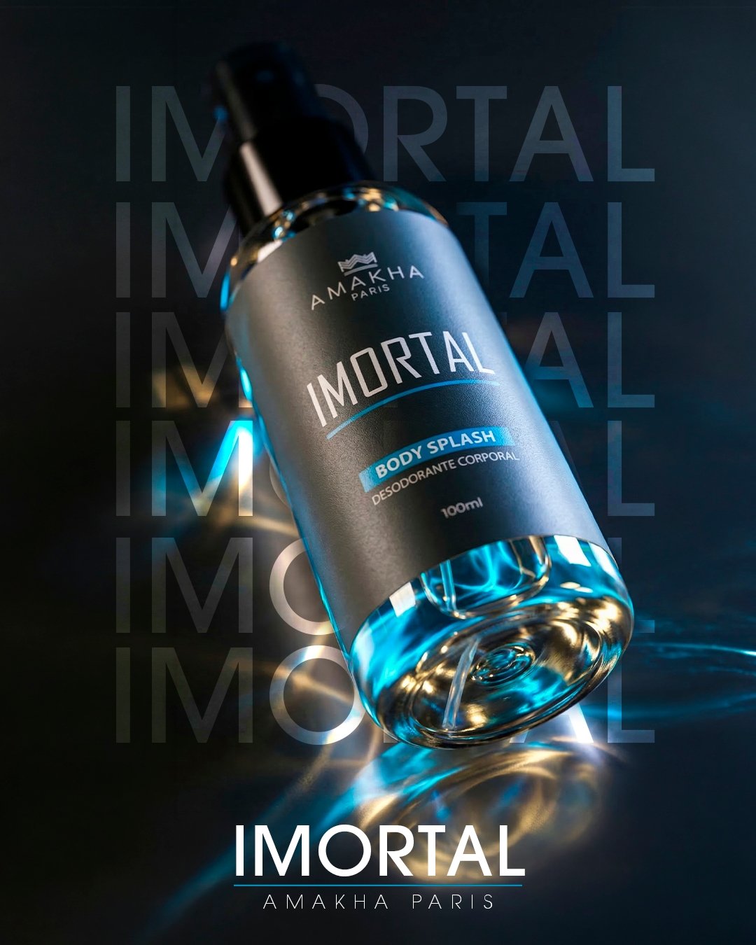 Oferece alta projeção e fixação para uso noturno. Em seguida, o Body Splash Imortal, de 100ml, é amadeirado aquático. Combina notas oceânicas, toranja, lavanda, jasmim, âmbar cinzento e madeira guaiac.