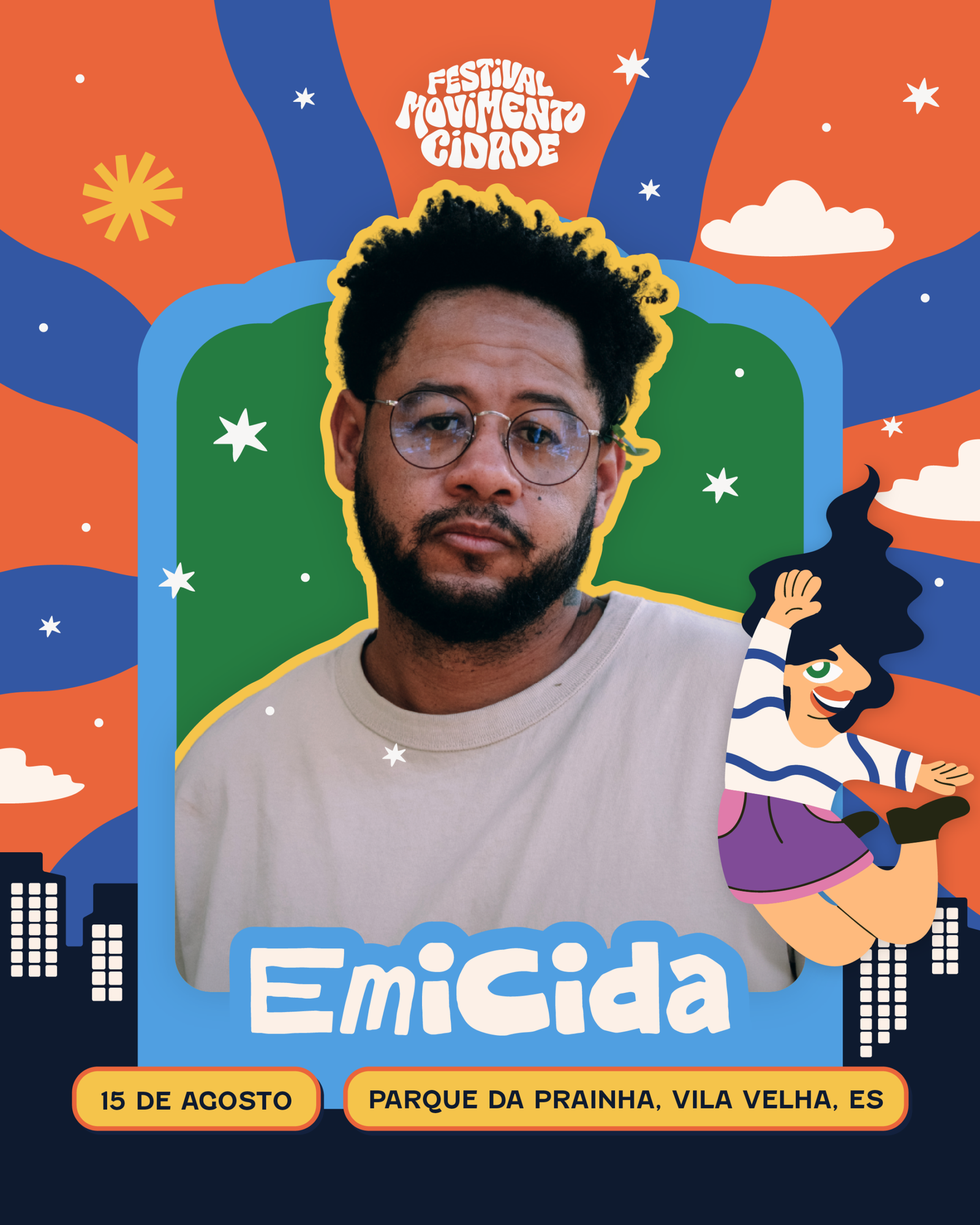 Emicida leva a MCMV Tour ao maior festival de artes do Espírito Santo, no Parque da Prainha, dia 15 de agosto.