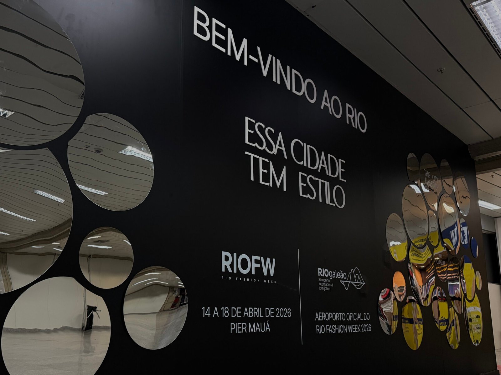 O RIOgaleão promove experiências para fashionistas no terminal. No desembarque doméstico, uma ativação dá boas-vindas com a mensagem “Essa cidade tem estilo”. Por outro lado, usa ilusão de múltiplos espelhos.